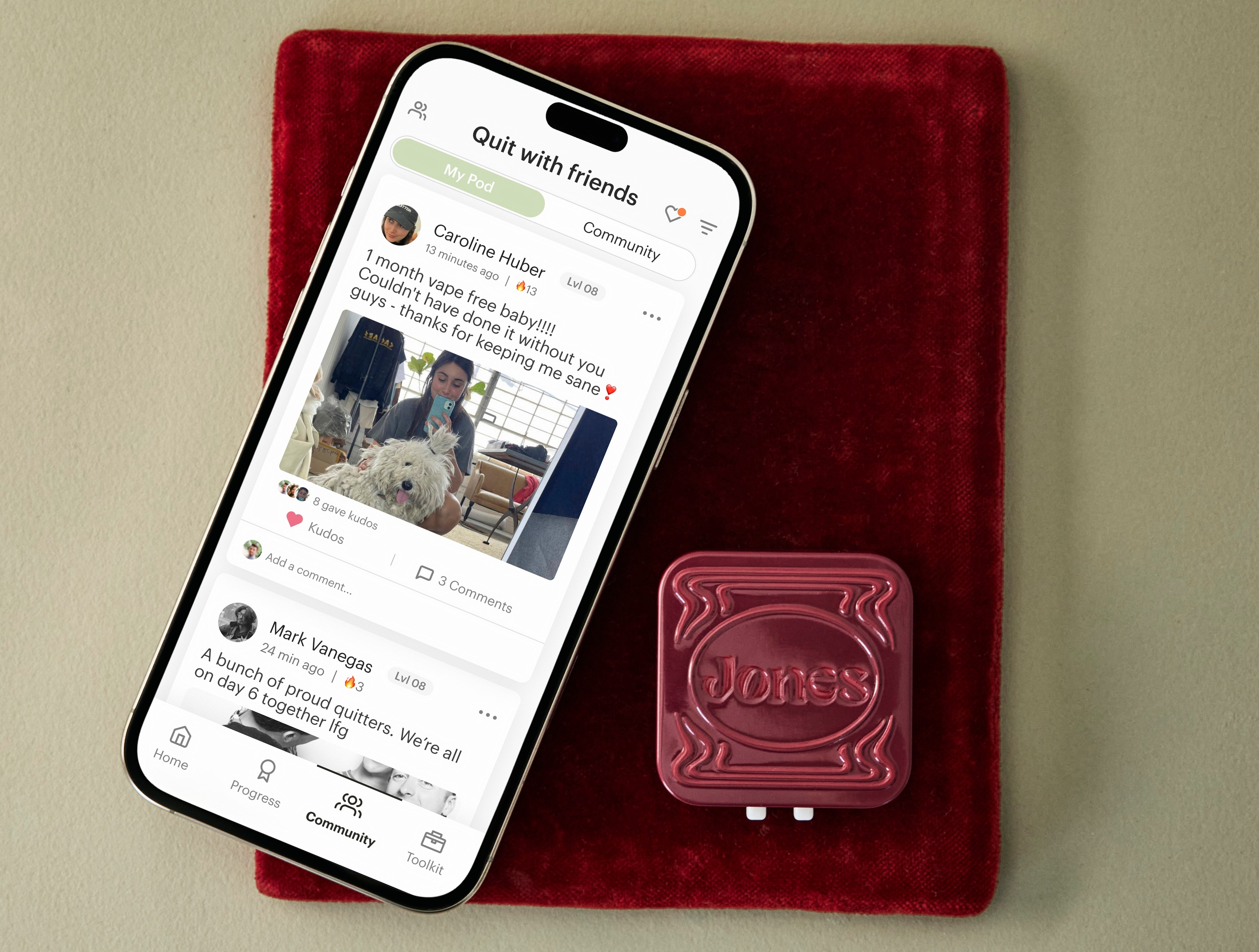 Jones founders Caroline and Hilary tried quitting cold turkey dozens of times. It never worked. Eventually, they took matters into their own hands, and with the help of top addiction experts, built the quitting support they needed to succeed the first time around.