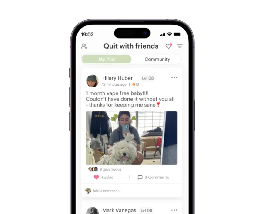 Support your private pod of friends. Share with and learn from the broader quitter community. Finally, a space to talk about the highs and lows of quitting.