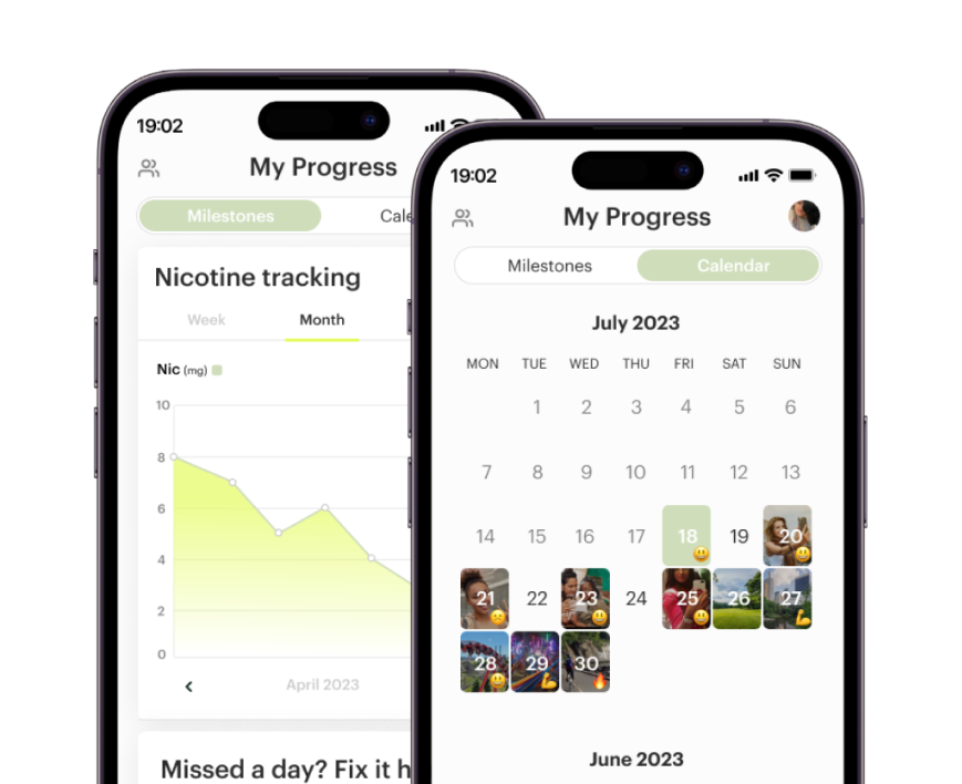 We know first hand that quitting isn’t always a straight line. Track your slips and celebrate the progress you make without having to “relapse” to day one. Reflect on your milestones with a calendar of all check-ins.
